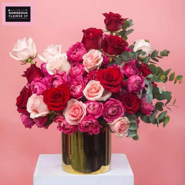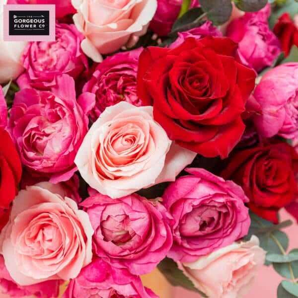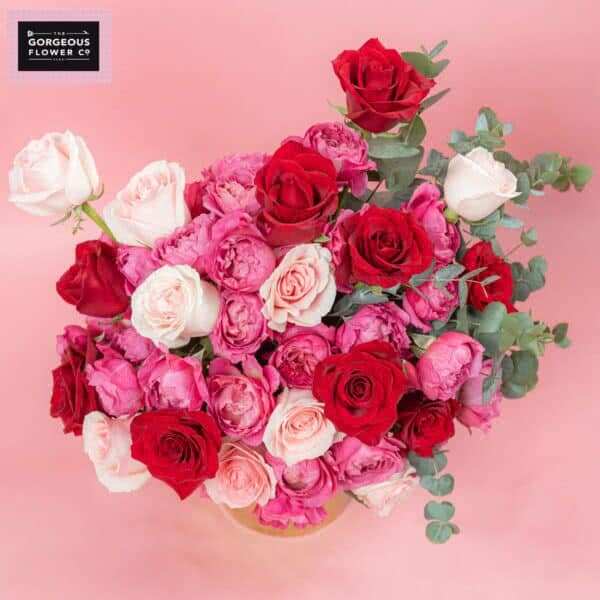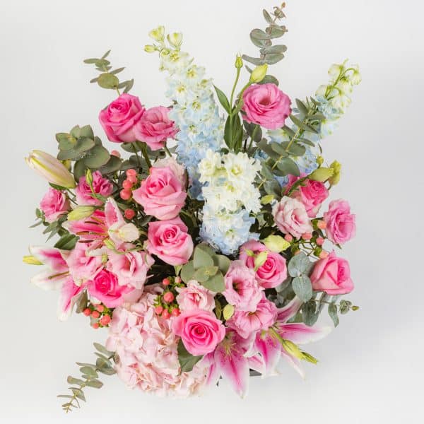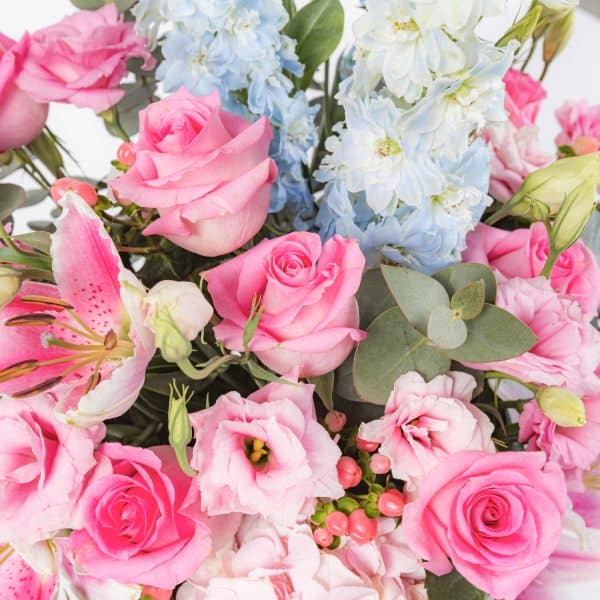 Gorgeous Garden Pink with Roses, Spray roses, Hypericum berries and Carnations