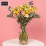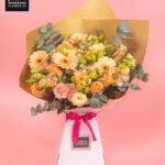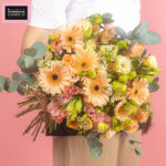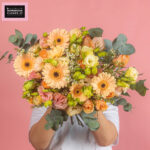 A vibrant autumn-inspired bouquet featuring soft Eucalyptus, delicate Lisianthus Peach, cheerful Gerbera Peach, creamy Wax White, and romantic Peach Rose. Coral Calling brings a warm, playful, and stylish pop of color to any space, perfect for celebrating the season in full bloom.