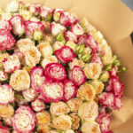 As vivid as a fleeting dream, this bouquet whispers of romance and serenity, soft and luminous like the blush of dawn.
